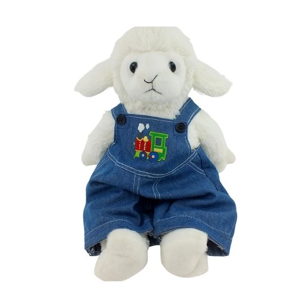 Any bear or animal dressed in this beautiful denim overall set will look adorable. The brightly embroidered train on the front adds a special little touch of charm!