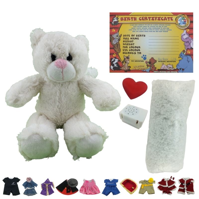 This easy to do kit comes with the skin of your new furry friend plus ample new fill for you to stuff your own bear.